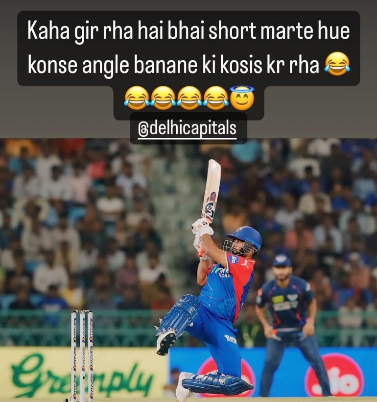 IPL 2024 में Rishabh Pant बल्लेबाज के तौर पर पूरी लय में नजर आ रहे हैं, उनकी DC टीम हारे या जीत पंत का बल्ला जरूर चलता है। साथ ही पंत लंबे समय बाद क्रिकेट खेलकर काफी उत्साहित हैं, जिसका नजारा उनकी इंस्टा स्टोरी पर नजर आया है और वो स्टोरी काफी ज्यादा ही फनी है।