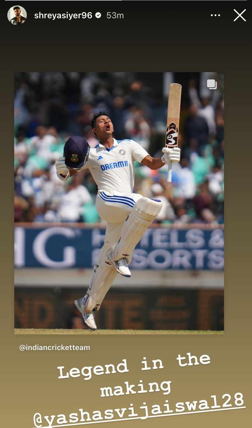 श्रेयस अय्यर ने यशस्वी को लेकर ये स्टोरी शेयर की है
