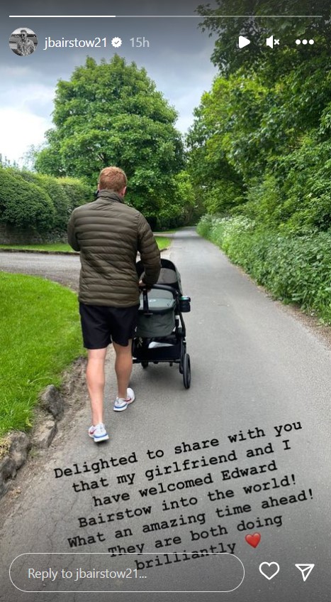 जॉनी बेयरस्टो ने 7 जून को इंस्टाग्राम स्टोरीज के जरिए खुलासा किया कि उनकी गर्लफ्रेंड ने हाल ही में उनके पहले बच्चे को जन्म दिया है, और साथ ही उन्होंने अपने बेटे के नाम का भी खुलासा किया है। इंग्लिश स्टार ने उनकी दुनिया में उनके बेबी बॉय के आने का खुलासा करते हुए इंस्टाग्राम स्टोरीज पर लिखा, “मुझे आपके साथ यह खुशखबरी शेयर करते हुए बहुत खुशी हो रही है कि मैं और मेरी गर्लफ्रेंड “एडवर्ड बेयरस्टो” के माता-पिता बन गए हैं। आने वाला समय क्या अद्भुत होने वाला है।”